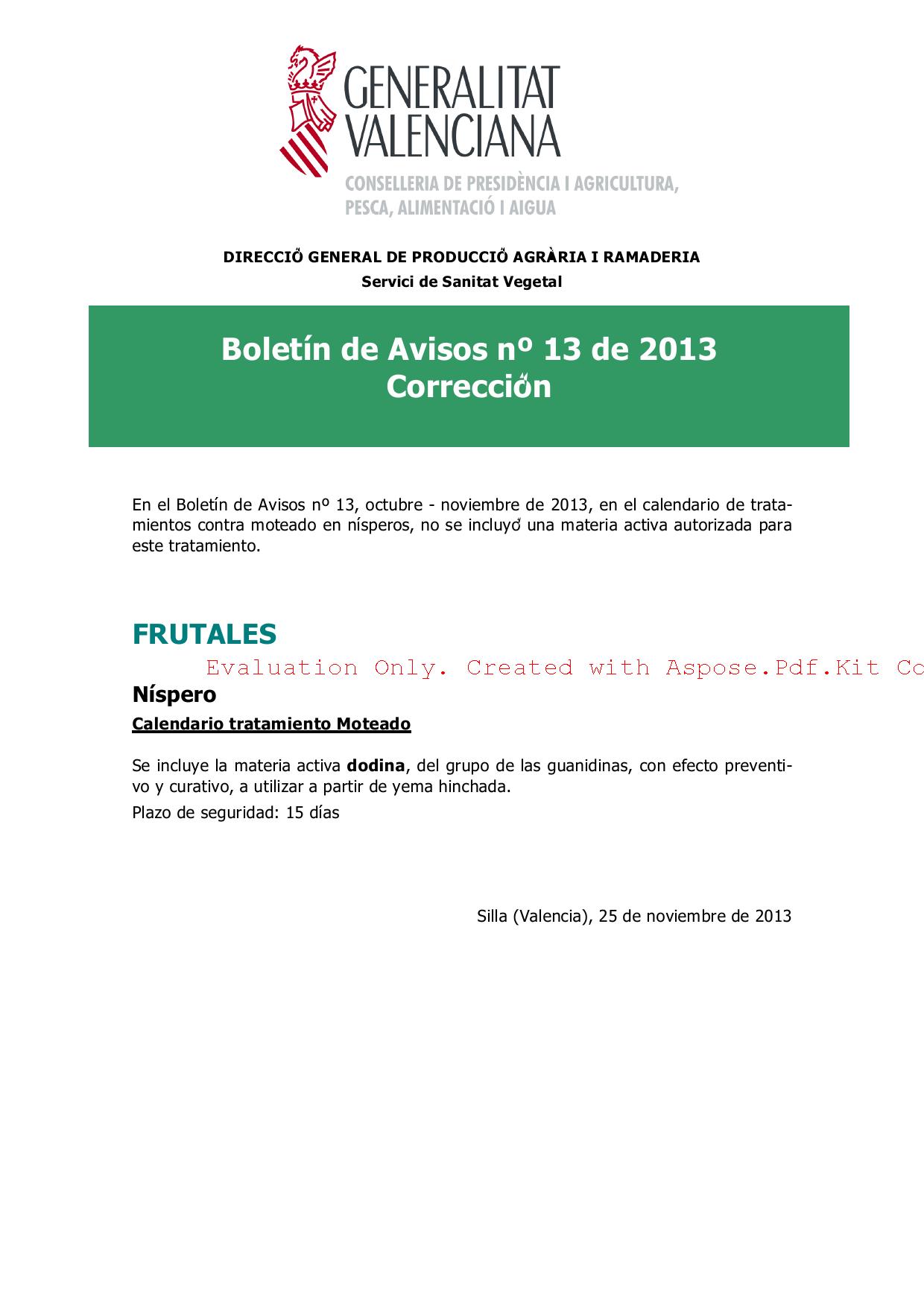 Corrección del Boletín de Avisos Nº 13-2013, octubre-noviembre