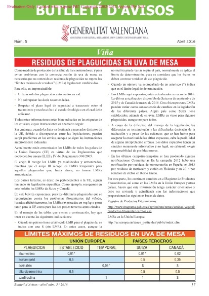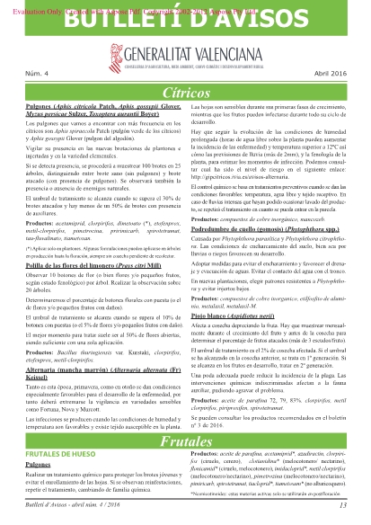 Boletín de Avisos fitosanitarios número 11 correspondiente al mes de octubre de 2016