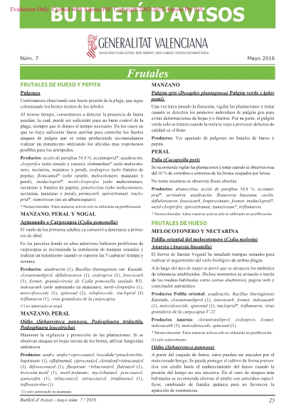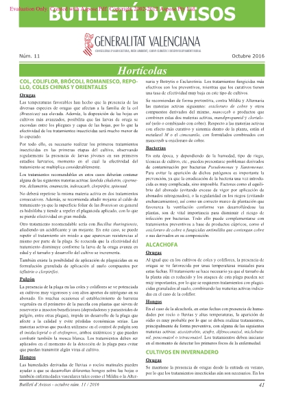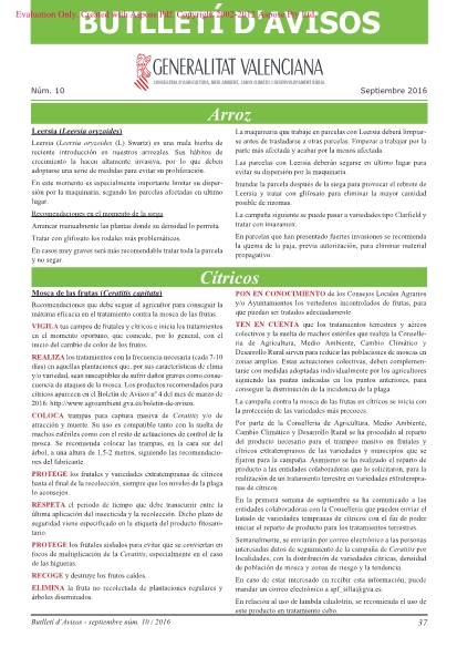 Boletín de Avisos fitosanitarios número 11 correspondiente al mes de octubre de 2016