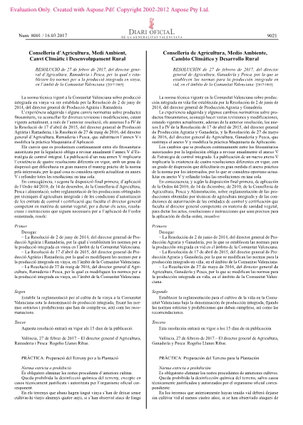 Reglamento producción integrada viña. 17-01-08. Comunitat Valenciana
