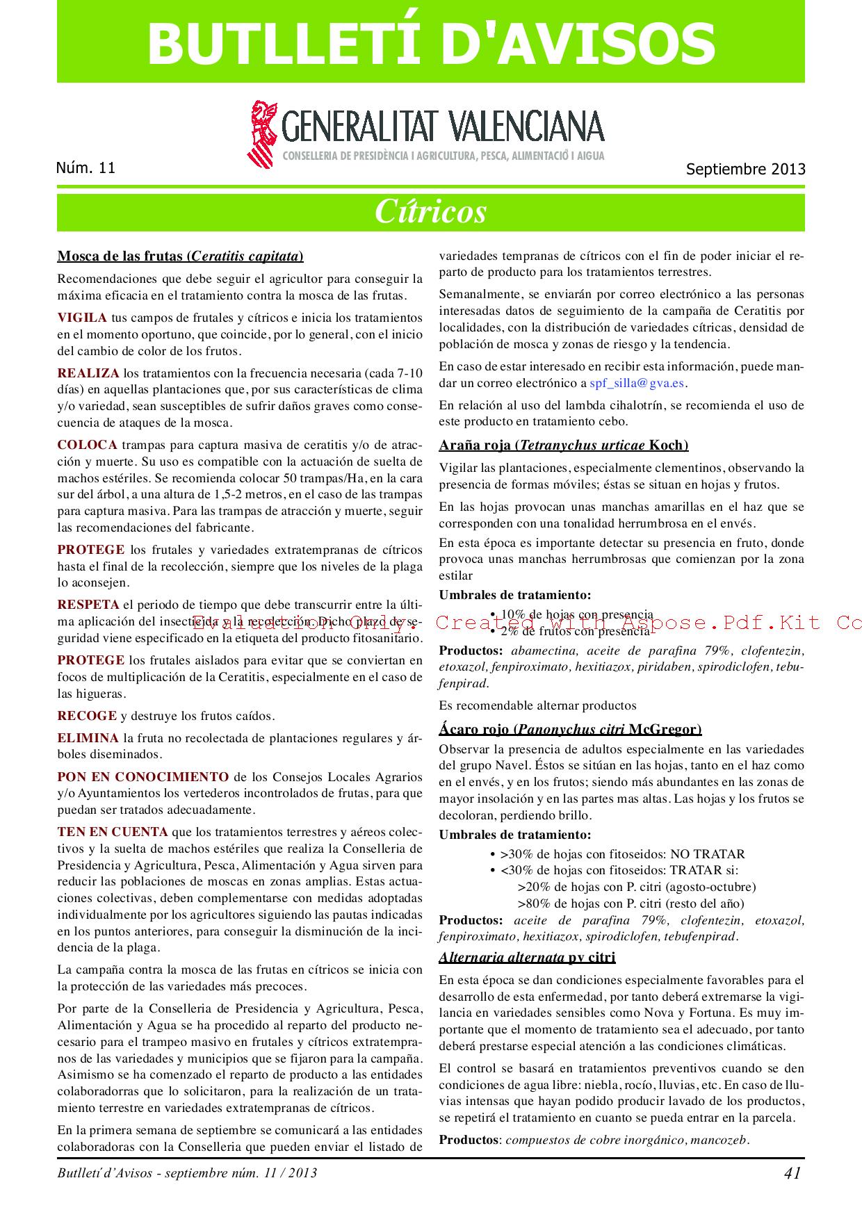 Se informa sobre diversas plagas y enfermedades en los cultivos más representativos de la agricultura de la Comunidad Valenciana, así como sobre las medidas para su control.